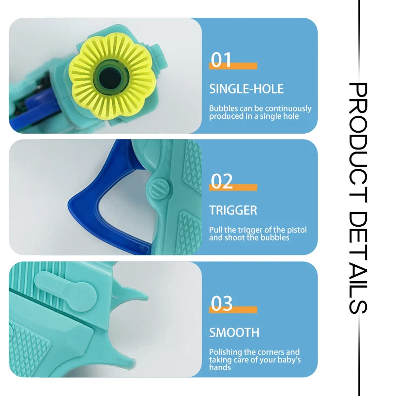 Introducing the hot selling bubble gun, a portable and manual toy that provides continuous foaming fun without the need for batteries! Perfect for children's play and ideal for outdoor camping adventures, this bubble gun will keep kids entertained for hours. Its innovative design allows for effortless bubble creation, making it a must-have for family outings and playtime in the park.