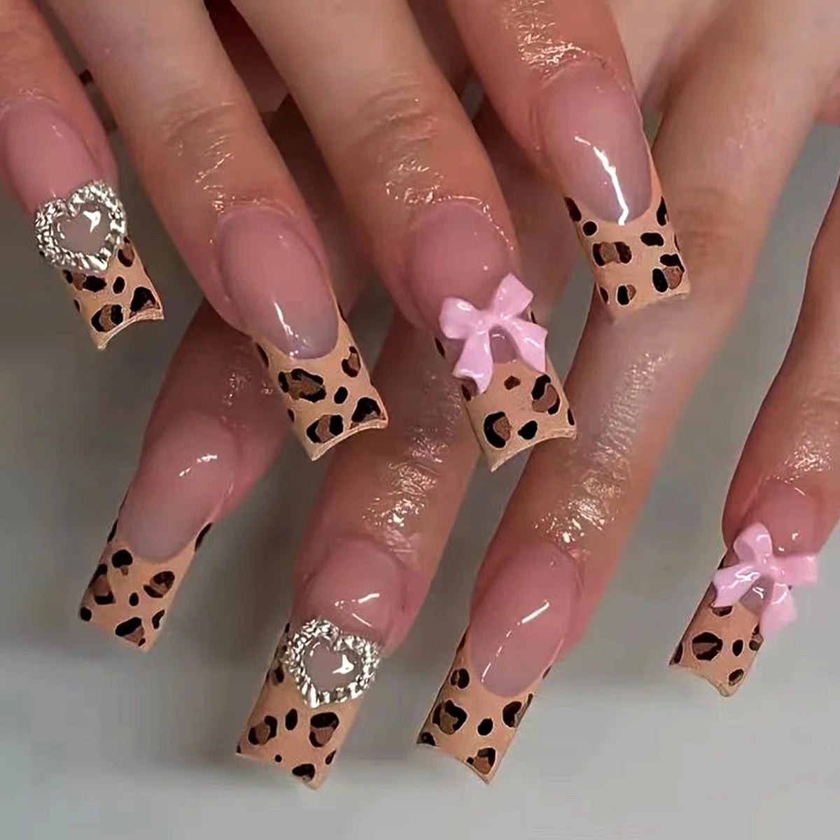 • Stunning Design: Each nail showcases a chic French leopard print adorned with delightful pink bows and heart decorations, ensuring you stand out at any event.