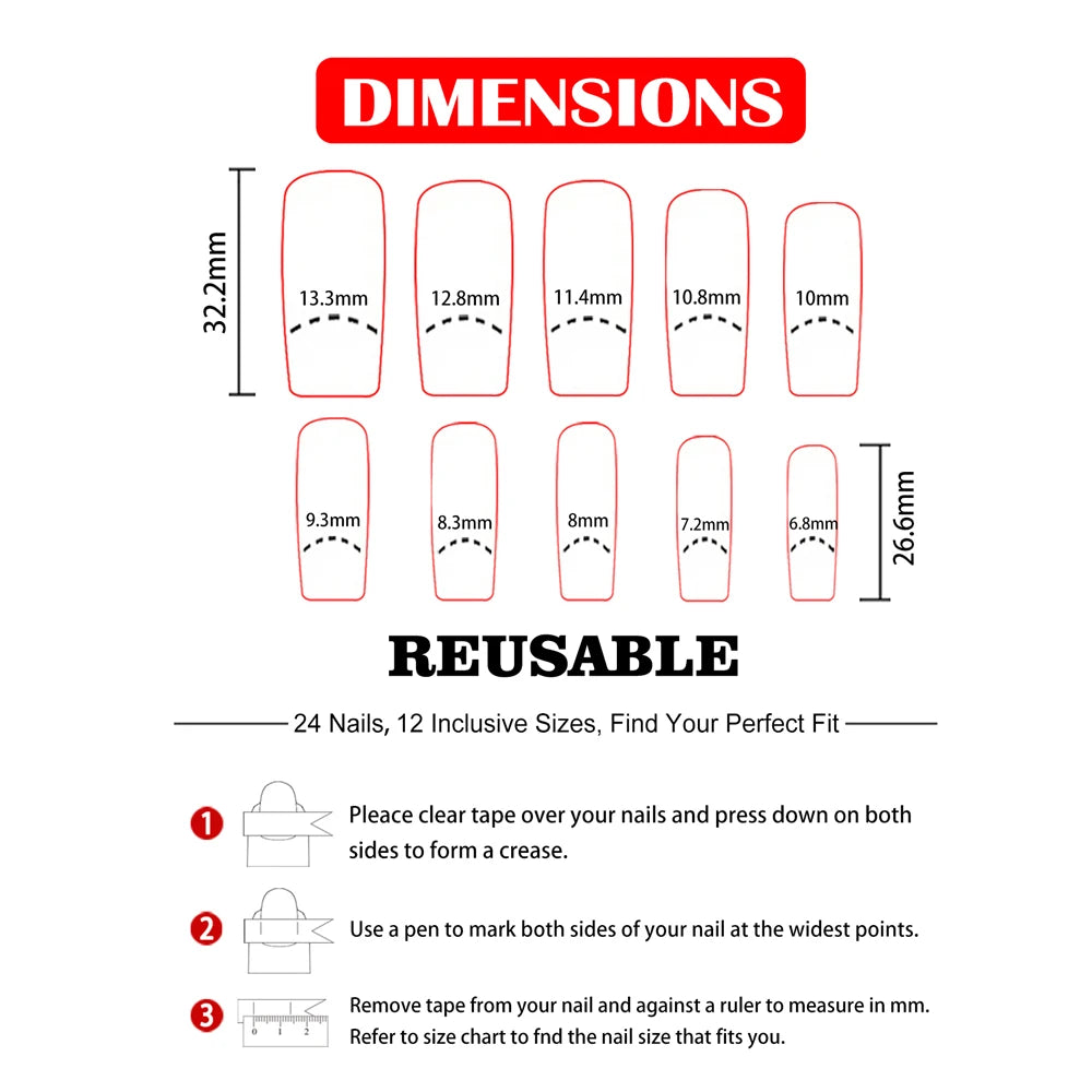 • High-Quality Material: Made from durable plastic, these fake nails are designed to withstand daily wear while maintaining their stunning look.