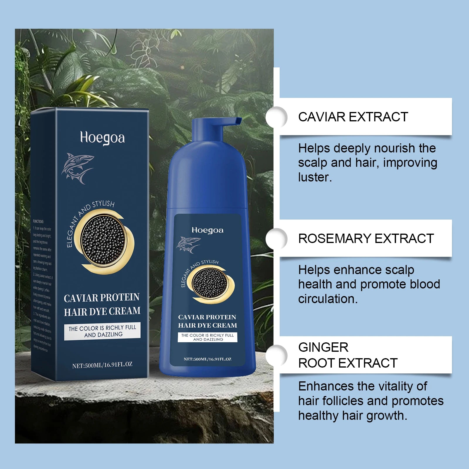 This Caviar Protein Hair Dye Shampoo helps cover gray/white hair while nourishing, smoothing, and restoring natural color with herbal ingredients.