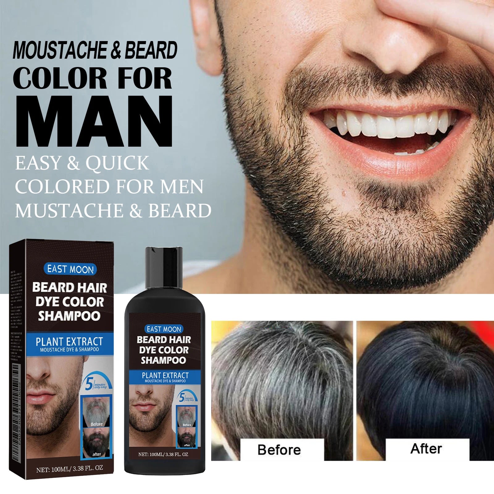East Moon Beard Dye Shampoo delivers fast, natural gray coverage while nourishing beard hair with chamomile. Ideal for busy men who want a subtle, even color without messy dyes — available now at CashyMart.