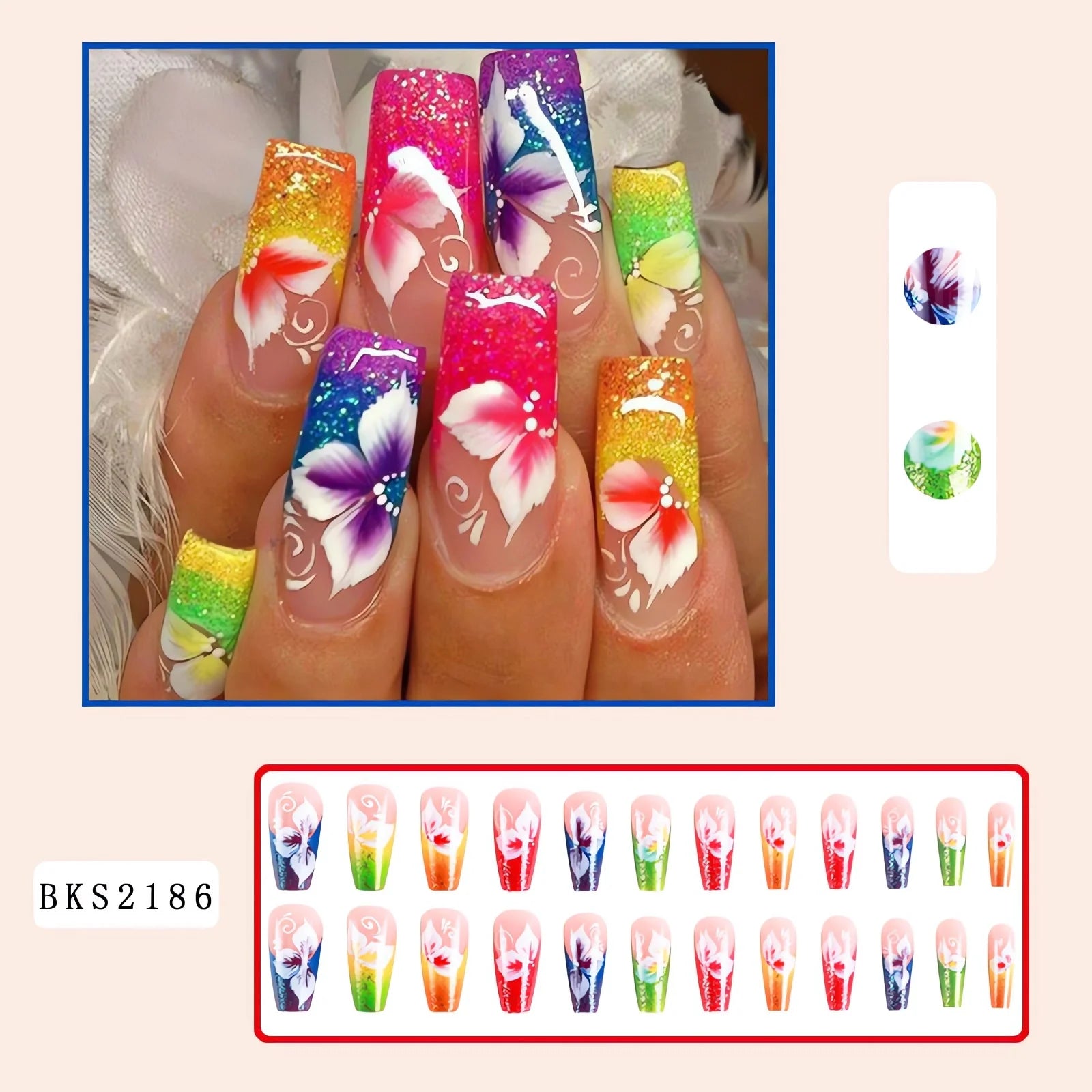 Transform your manicure game with our vibrant Floral Pattern Wearable Nails. These colorful, flower-shaped press-on nail tips are designed for the fashion-forward individual who wants to make a statement.