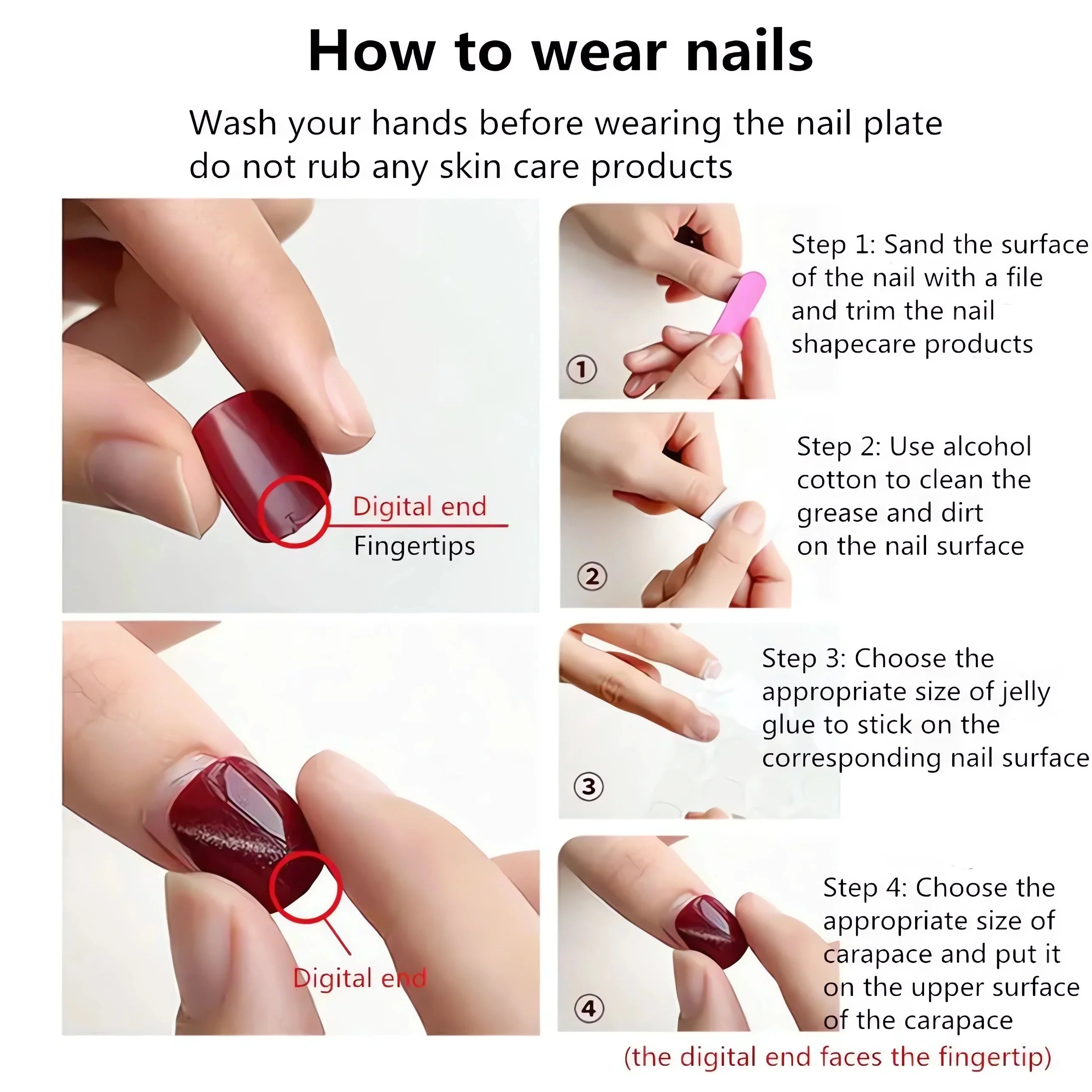 • Easy Application: No need for expensive salon visits! Our press-on nail tips are simple to apply, allowing you to achieve a flawless manicure in minutes.