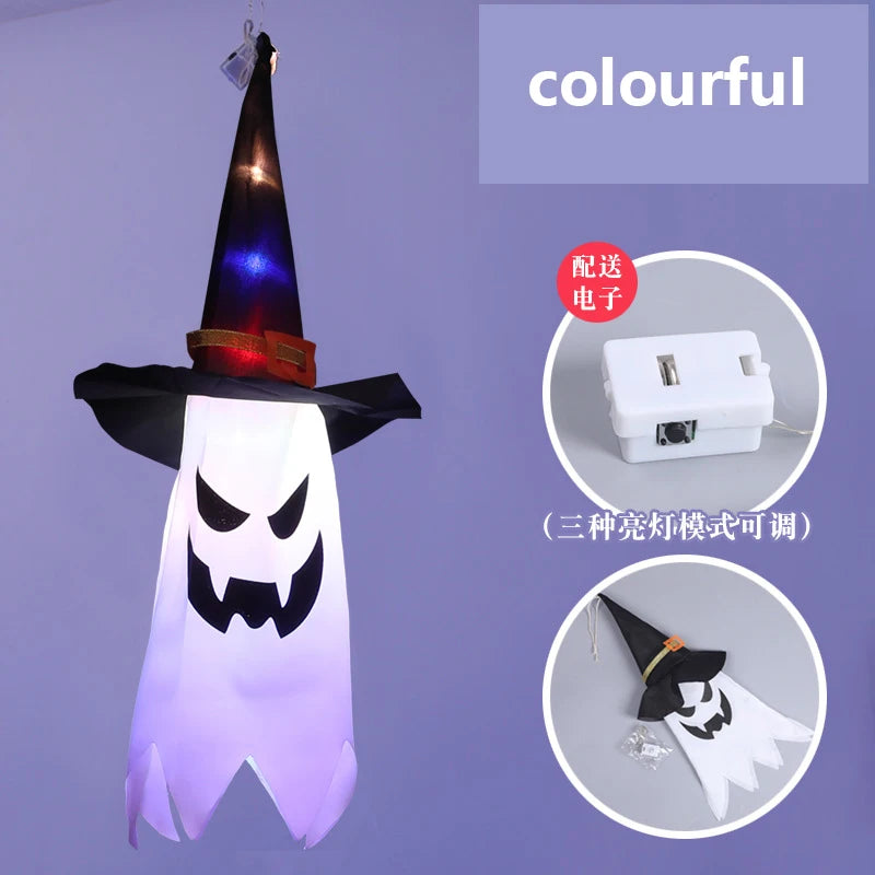 LED Halloween Decoration Flashing Light Gypsophila Ghost Festival Dress Up Glowing Wizard Ghost Hat Lamp Decor Hanging Lantern