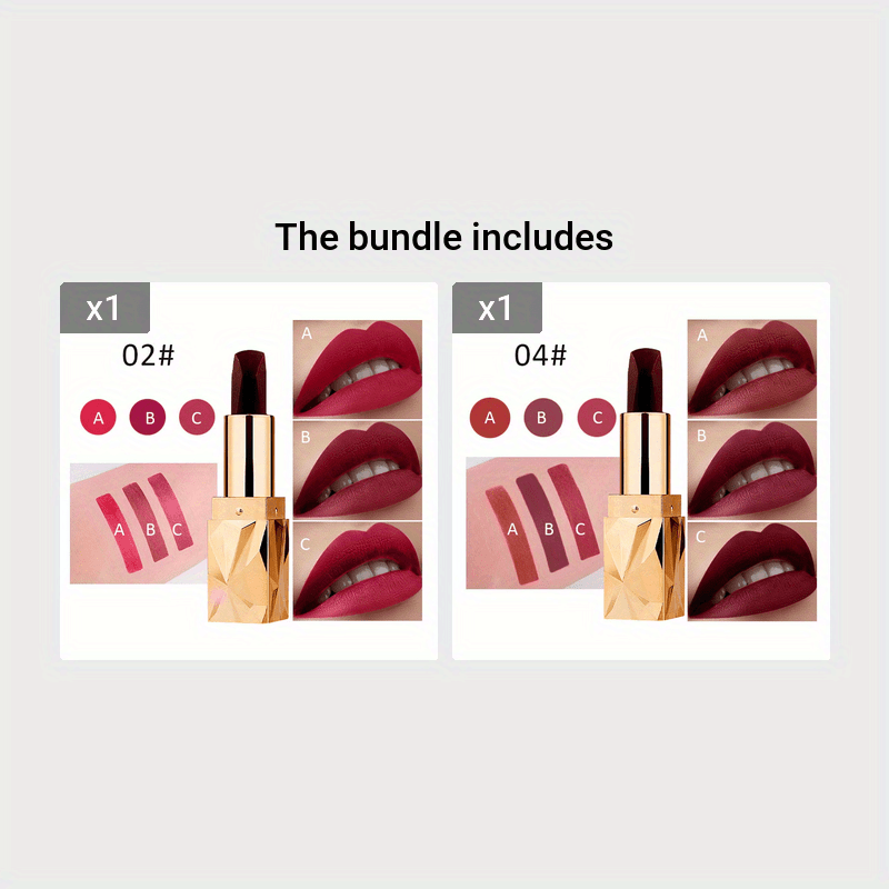 - Three Gorgeous Shades: Enjoy the versatility of three stunning colors in a single lipstick, allowing you to effortlessly switch between looks.