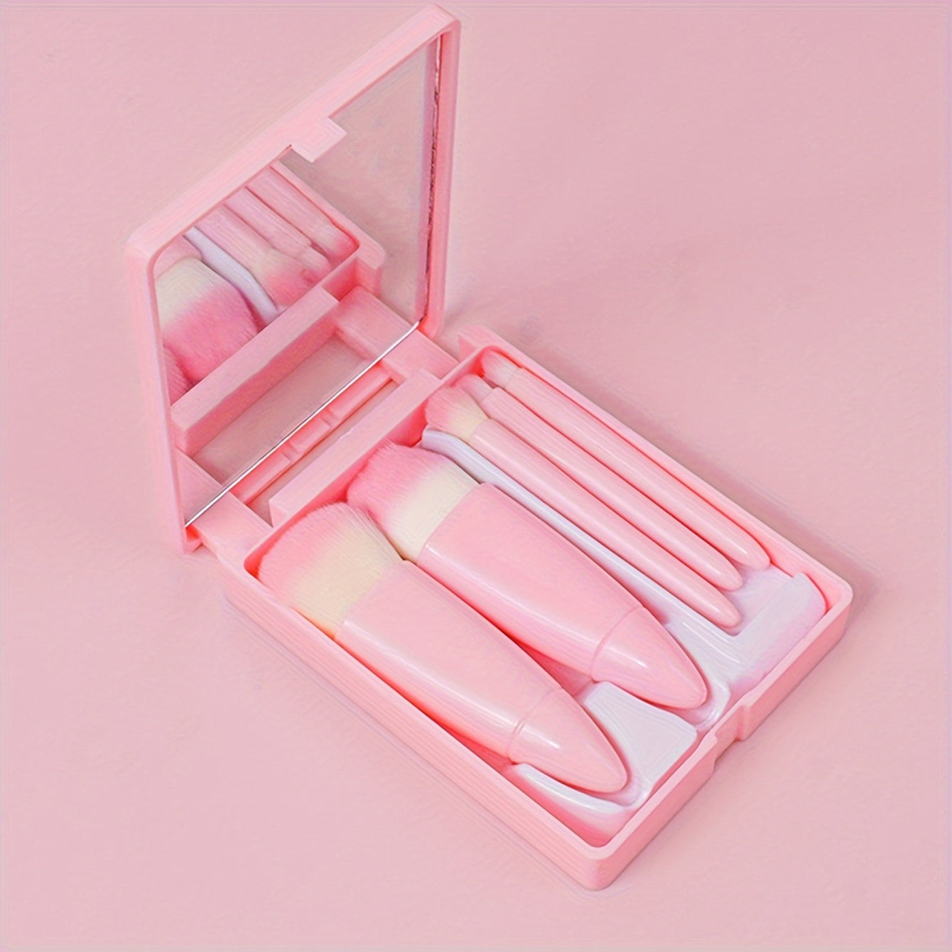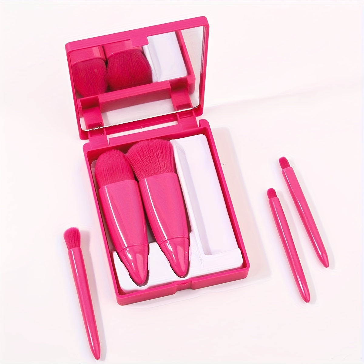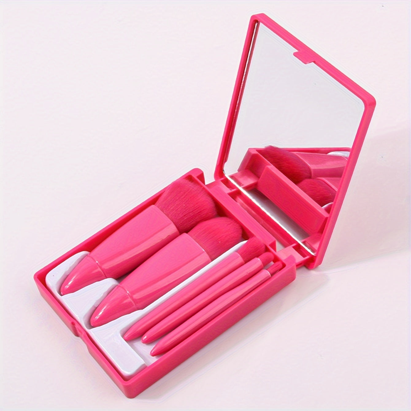 Introducing our 5 Piece Mini Travel Portable Makeup Brush Set with an elegant mirror, designed to meet all your cosmetic needs while you travel. This chic collection of pink brushes is perfect for achieving a flawless look wherever you are!