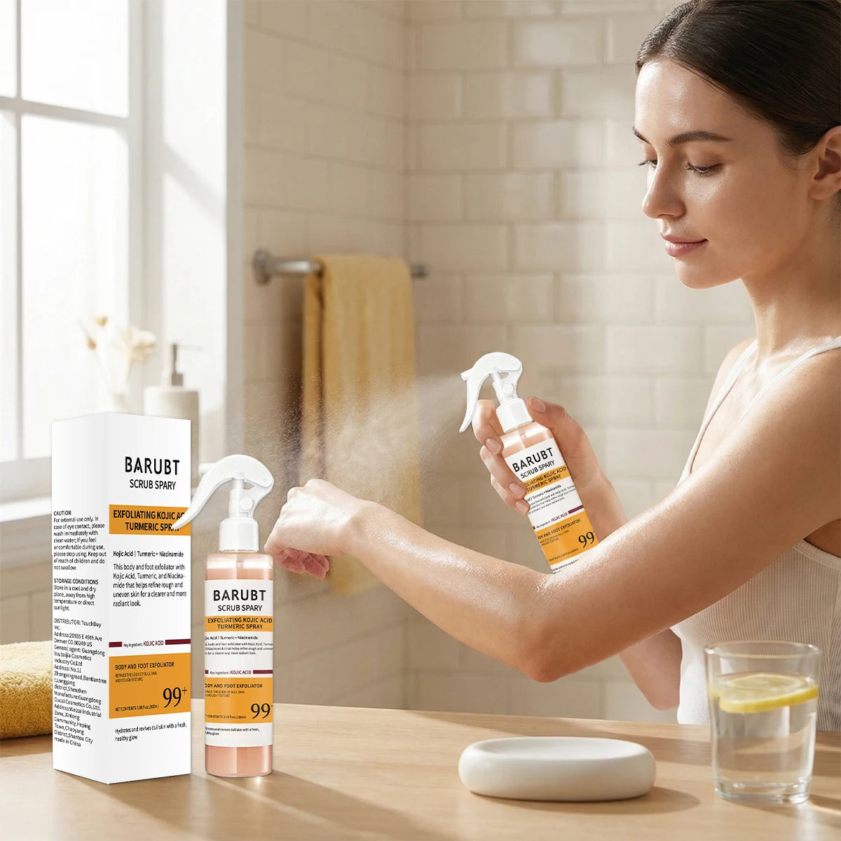 Turmeric Exfoliating Spray provides gentle exfoliation while moisturizing and improving rough skin texture. Designed to remove dead skin cells across the body for smoother, brighter, and healthier-looking skin.